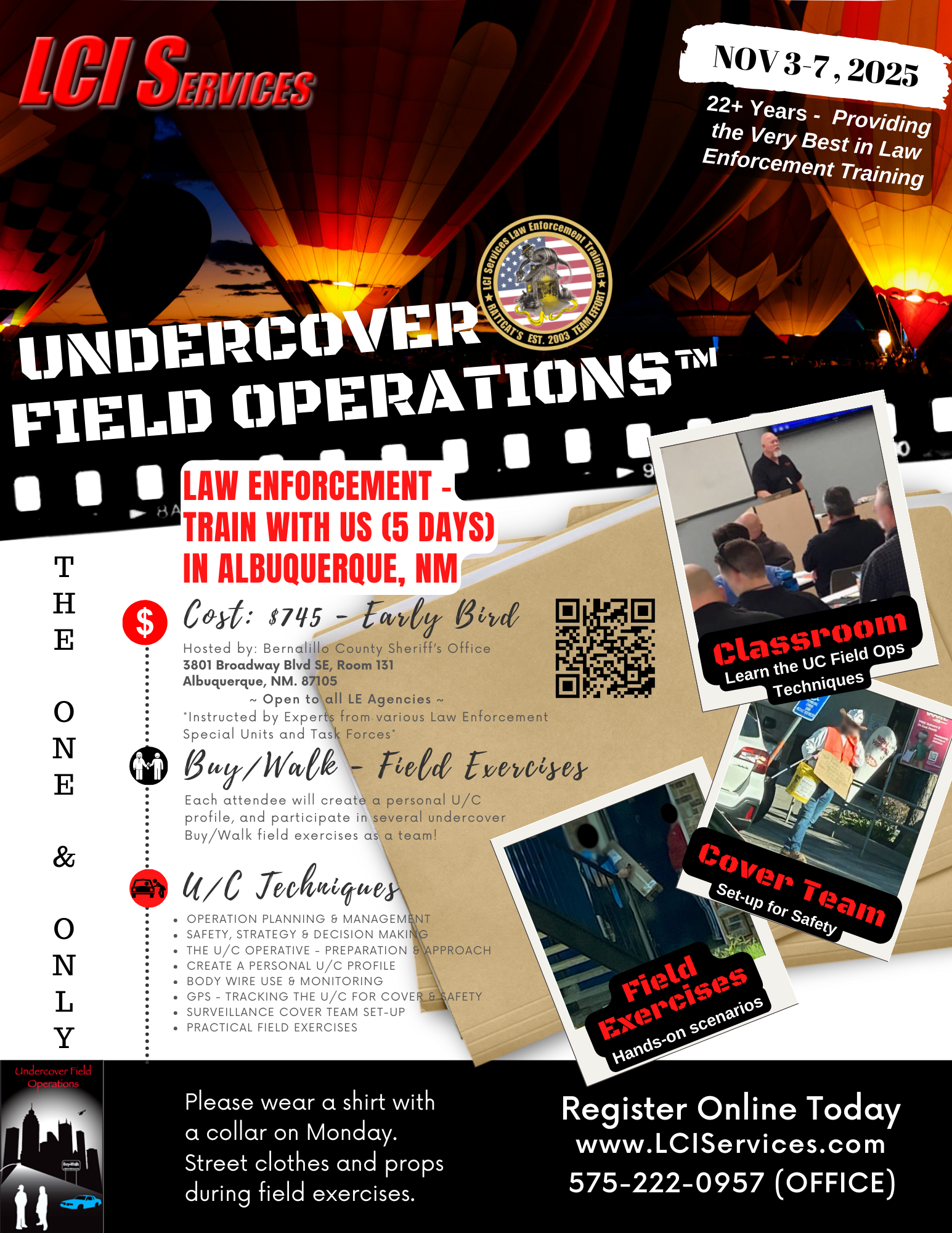 Albuquerque NM Nov 2025 Undercover Field Ops Flyer January 26, 2025 1545 × 2000 Albuquerque NM Nov 2025 Undercover Field Ops Flyer Share or Save: Print (Opens in new window) Print Share on LinkedIn (Opens in new window) LinkedIn Share on Facebook (Opens in new window) Facebook Share on X (Opens in new window) X Email a link to a friend (Opens in new window) Email Like Loading...