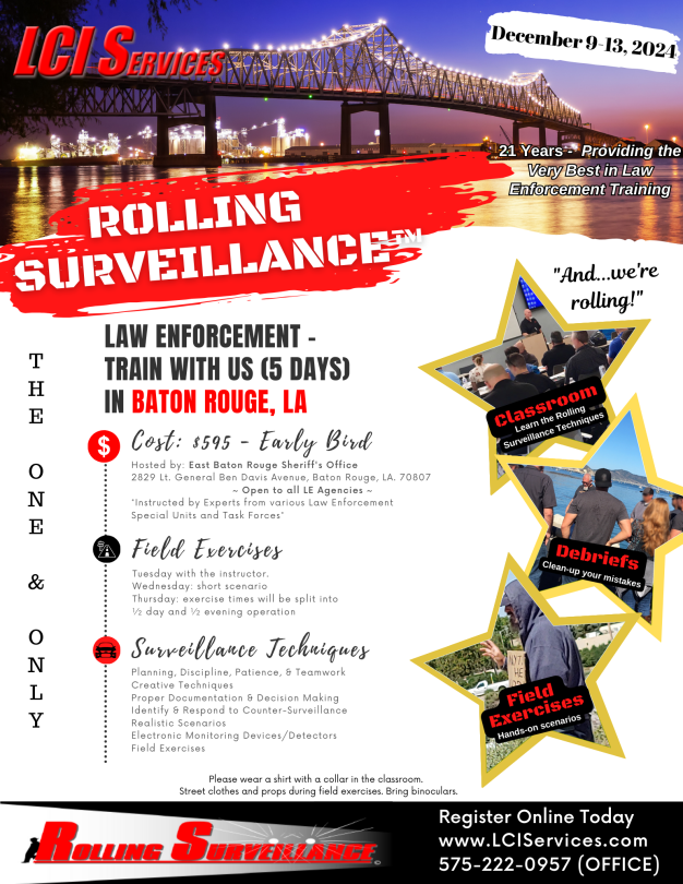 Baton Rouge December 2024 Rolling Surveillance Flyer January 4, 2024 1545 × 2000 Baton Rouge December 2024 Rolling Surveillance Flyer Share or Save: Print (Opens in new window) Print Share on LinkedIn (Opens in new window) LinkedIn Share on Facebook (Opens in new window) Facebook Share on X (Opens in new window) X Email a link to a friend (Opens in new window) Email Like Loading...