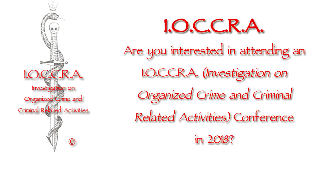 Investigation on Organized Crime and Criminal Related Activities Conference Poll August 10, 2017 1038 × 576 Investigation on Organized Crime and Criminal Related Activities Conference Poll Are you interested in attending an IOCCRA Conference in 2018 Share or Save: Print (Opens in new window) Print Share on LinkedIn (Opens in new window) LinkedIn Share on Facebook (Opens in new window) Facebook Share on X (Opens in new window) X Email a link to a friend (Opens in new window) Email Like Loading...