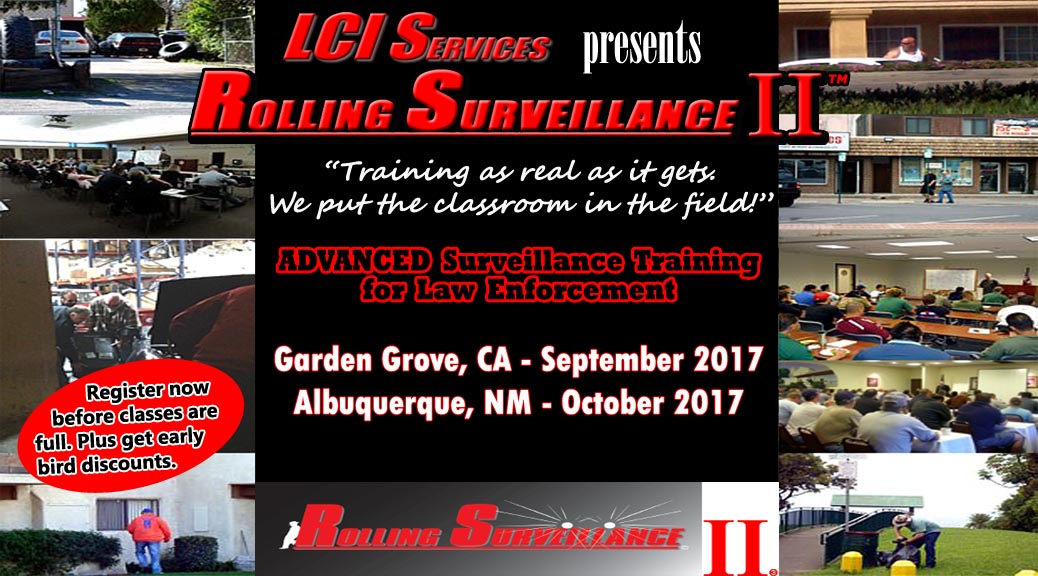 Advanced Rolling Surveillance will be in Orange County, Southern California and Albuquerque, New Mexico this year. Register now.